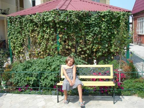 Территория: Уютная и благоустроенная, в центре дворика беседка с фонтаном; детская площадка - качели, песочница; мангал и автостоянка бесплатно.