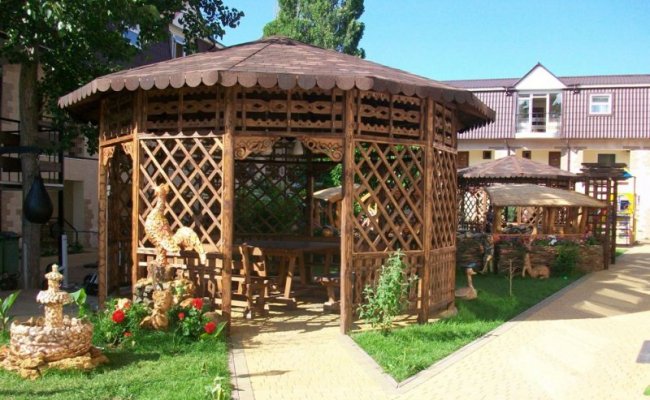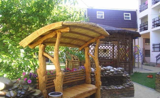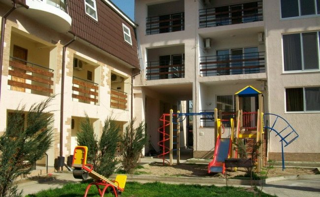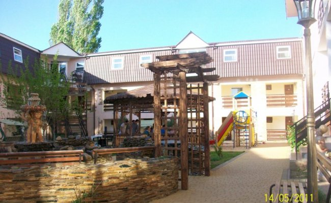 Пансионат «Сказка» состоит из трех каменных корпусов: два 3-х этажных и один 5-ти этажный, которые располагаются буквой "П", что создает очень уютный и комфортный дворик. В центре двора - красивый фонтан, водопады с ночной подсветкой.