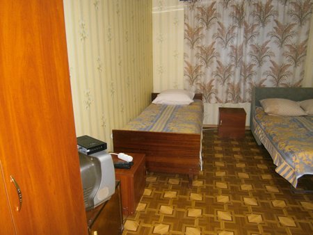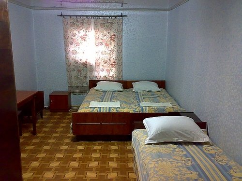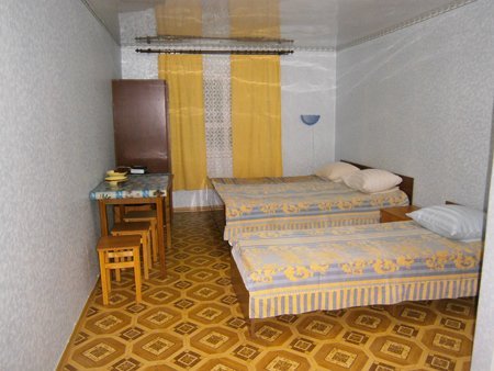 - Номер эконом. Просторная комната. Есть холодильник, стол, тумбочки. Номер на 3-5 человек.
