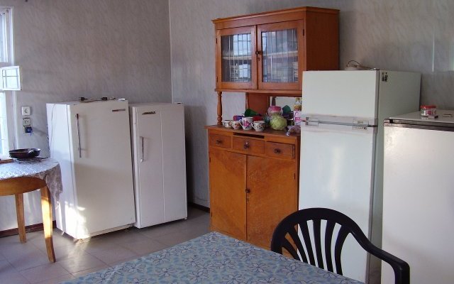 В летней кухне расположены несколько газовых плит с холодильниками на каждый номер. На кухне имеется вся необходимая посуда для приготовления пищи. Есть возможность заказа завтрака, обеда и ужина. На кухне есть телевизор с 10 каналами как местного так и национального телевещания.