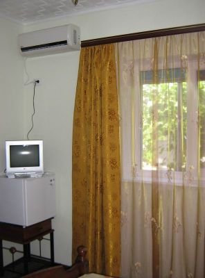 Пансионат Гостиный Дом "Аквамарин" расположен в пятистах метрах от Черного моря на берегу Каламитского залива. Два жилых здания частного пансионата находятся внутри небольшого парка. К услугам отдыхающих: 2-х, 3-х и 4-х местные номера со всеми удобствами (холодильник, телевизор – эфирный обзор, кондиционер, полы с подогревом, горячая вода – круглосуточно).