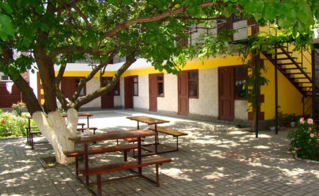 Большая территория частной гостиницы располагает для веселых детских игр и комфортного отдыха взрослых. Во дворе - уютная беседка-столовая с телевизором для отдыха, шашлычница-мангал. Зелёная зона, обилие цветущих роз и плодовых деревьев.
