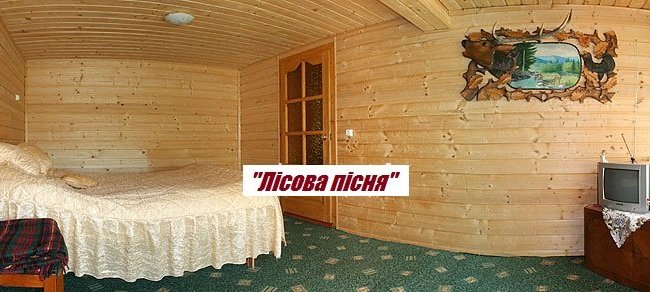 На першому поверсі: 2 двомісні кімнати (двохспальне ліжко, комод, телевізор), кухня.