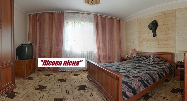На другому поверсі: 3 двомісні кімнати (розкладний диван, двохспальне ліжко, комод, телевізор).