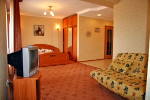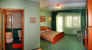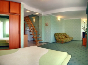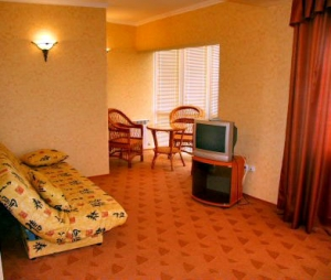 Просторный двухуровневый люкс, со всем необходимым для комфортабельного и спокойного отдыха. В номере все удобства, кондиционер, холодильник, спутниковое ТВ. Так же есть уютный балкон, с которого открывается замечательный вид на близлежащие красоты.