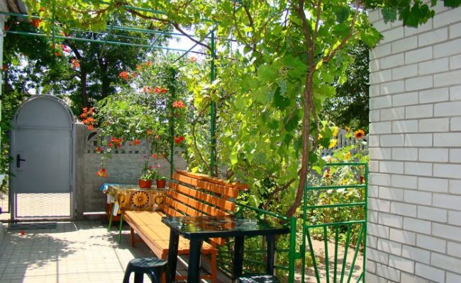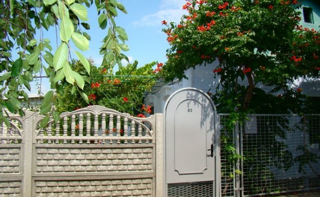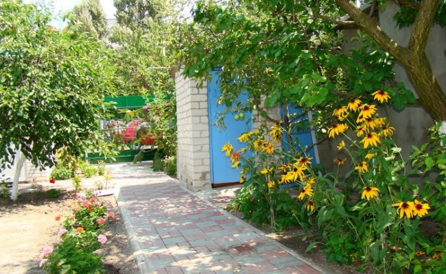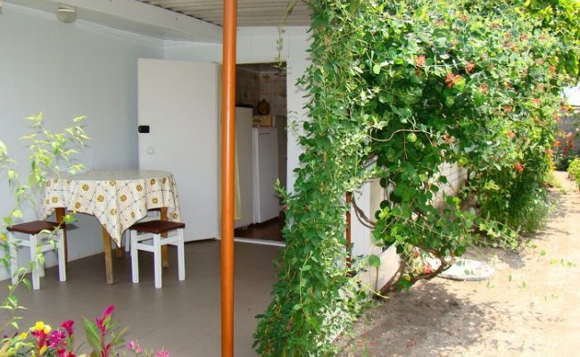 Новое капитальное здание с номерами, вместительностью до 4 человек в каждый номер, с индивидуальным входом с удобствами: новая современная мебель, вентиляторы. На территории, во дворе - душевая кабинка и санузел – всё абсолютно новое – капитальное строение с современного типа, большое обилие зелени - южные плодовые деревья, цветы, виноград и др.