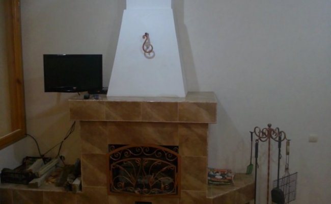 Первый этаж: большой холл-прихожая, комната на 2-3 человека, с большой кроватью и кондиционером, санузел, кухня, с посудой и всеми необходимыми принадлежностями для приготовления вкусной еды, камин.