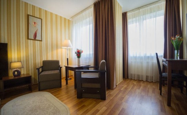 «Лесная Песня» - отель, в котором все номера категории «Апартаменты» с 2-3 комнатами и кухней. Площадь апартаментов от 30 до 60 м².