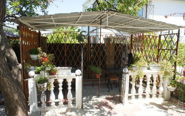 - уютный сад во внутреннем дворике с беседкой для отдыха и мангалом;