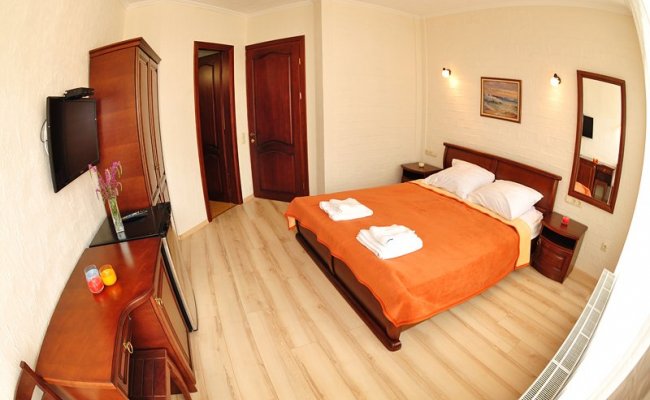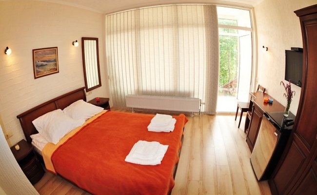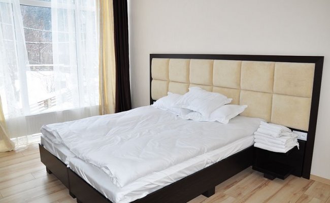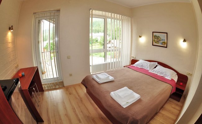 Мини-отель "Villa Nova Deluxe Вилла Нова" по-домашнему уютен. Размеры номеров — от 15 до 25 м.кв. с удобствами для одного, двух или трёх человек. Из каждого номера открывается потрясающий вид на горы. В отеле есть номера класса "стандарт", "полулюкс" и "апартаменты ". В них обязательно присутствует двухспальная кровать, итальянская мебель, стол, стулья, шкаф, LCD-телевизор со спутниковым телевидением, отдельный санузел с бойлером, душевой кабинкой и универсальным набором средств личной гигиены. Во всех номерах есть мини-бар. Первый этаж корпуса с номерами повышенной комфортности оборудован под кухню с необходимой бытовой техникой для готовки. Есть возможность арендовать двухкомнатные апартаменты с кухней и всем необходимым для уютного домашнего отдыха.
